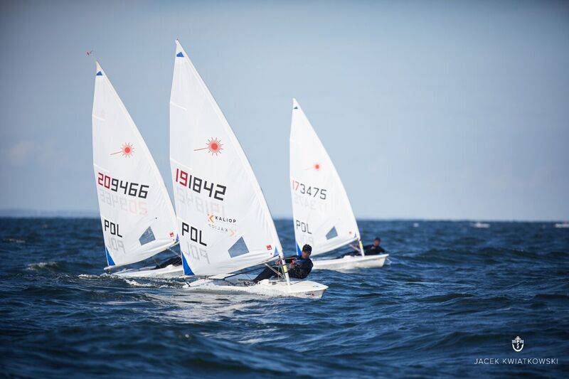 Wśród mężczyzn w klasie Laser Radial, w której ściga się aż 90 żeglarzy z 29 klubów, na czele znajdują się mistrz Polski seniorów Marcin Rudawski (MKS Dwójka Warszawa) oraz broniący tytułu w gronie juniorów Jakub Rodziewicz (Sejk Pogoń Szczecin) – obaj wygrali po pięć wyścigów.