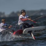 Zmagania sportowców rozpoczęły się wyścigami na foilach, tylko na to pozwolił bowiem lekki wiatr wiejący od brzegu w pierwszym dniu zawodów.