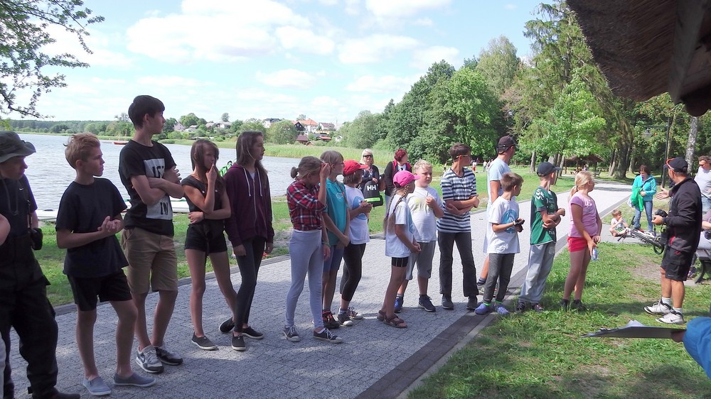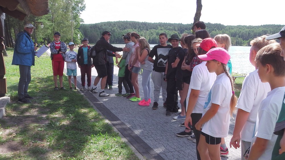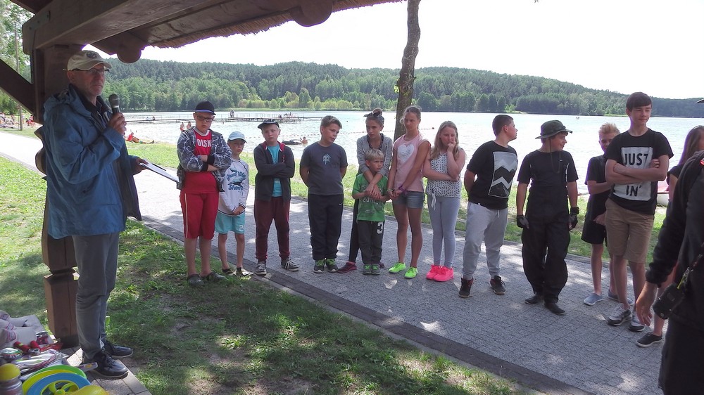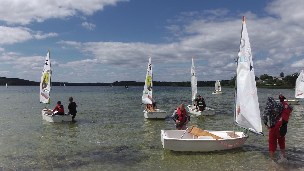 Uczestników na brzegu dopingowali koledzy – uczestnicy szkolenia żeglarskiego, rodzice oraz wypoczywający nad jeziorem mieszkańcy i wczasowicze. Na brzegu tajniki żeglowania fachowo wyjaśniał i komentował Jan Gliszczyński.