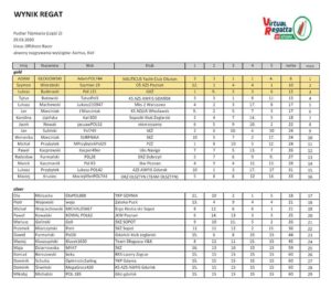 Na swoim facebookowym profilu trener podał zestawienie wyników uzyskanych przez zawodników ścigających się na platformie Virtual Regatta. Robocza nazwa cyklu treningów i wyścigów to Puchar Trójmiasta w e-sailingu, ale jak wyjaśnia nasz rozmówca, to określenie nie ma nic wspólnego z przełożonymi właśnie na inny termin dorocznymi regatami Żeglarskiego Pucharu Trójmiasta.