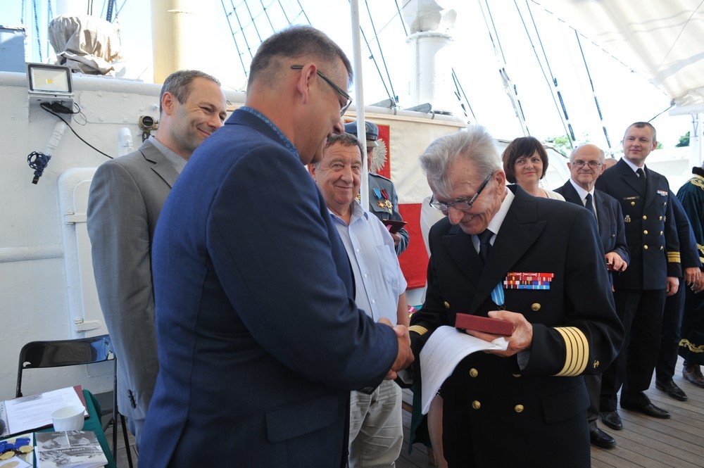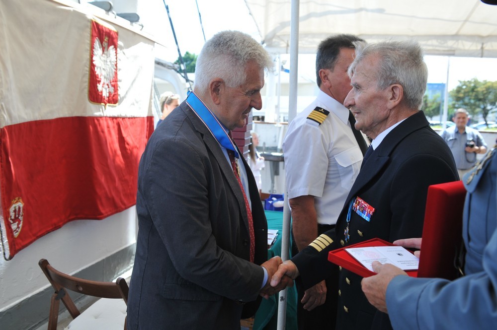 Uroczystość była również okazją do nagrodzenia osób zasłużonych dla krzewienia pamięci o marszałku Józefie Piłsudskim oraz przyjaciół Ligi Morskiej i Rzecznej. Prezes Pomorskiego Związku Żeglarskiego Bogusław Witkowski wręczył profesorowi Danielowi Dudzie, byłemu rektorowi Wyższej Szkoły Morskiej w Gdyni, medal Za Szczególne Zasługi Dla Żeglarstwa Pomorskiego.