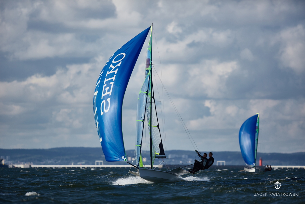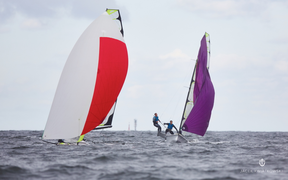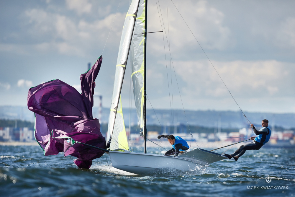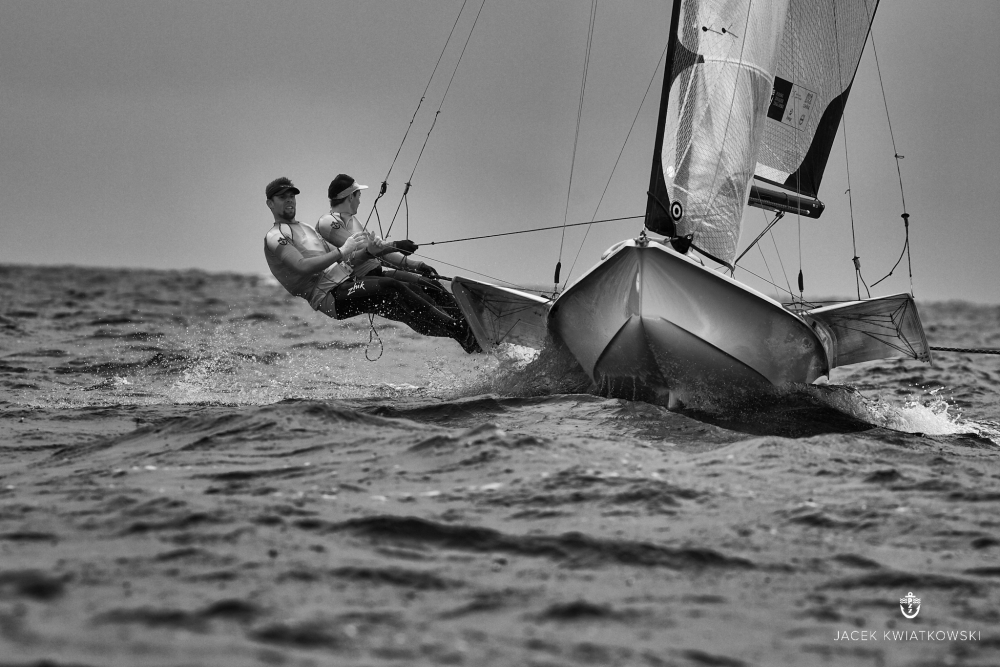W klasie 49er zdecydowanie prowadzi ósma załoga sierpniowych igrzysk olimpijskich, Łukasz Przybytek i Paweł Kołodziński (AZS AWFiS Gdańsk), która trzy razy była najlepsza, a w jednym wyścigu minęła linię mety jako druga. Panowie bronią tytułu zdobytego przed rokiem. Trzy punkty za nimi znajdują się Dominik Buksak i Szymon Wierzbicki (SKŻ Ergo Hestia Sopot), którzy trzykrotnie dopływali na drugim miejscu i raz zameldowali się na trzeciej pozycji. Punkt do nich tracą Przemysław Filipowicz i Jacek Piasecki (AZS AWFiS Gdańsk/SKŻ Ergo Hestia Sopot), po tym jak jeden wyścig wygrali na w kolejnych zajmowali trzecie miejsca.