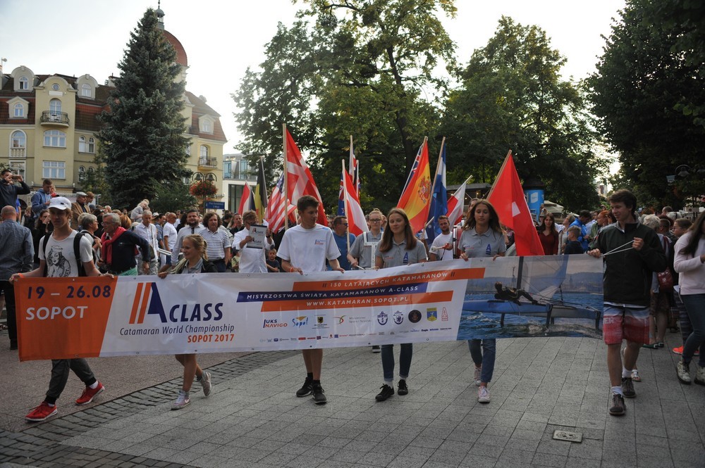 Na najważniejszą imprezę katamaranów A-Class w tym sezonie przyjechało ponad 140 zawodników z całego świata. Wśród nich m.in. olimpijczycy, zdobywcy mistrzostw świata i uczestnicy Pucharu Ameryki. Wraz z kibicami i mieszkańcami Sopotu wzięli oni udział w uroczystym rozpoczęciu mistrzostw.