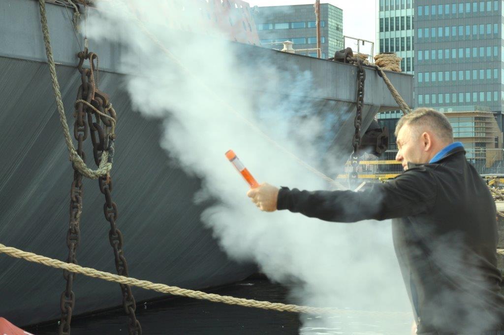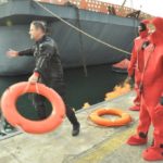 Podstawy rzucania kołem ratowniczym do rozbitka w wodzie, sprawdzenie szczelności skafandra i kombinezonu, prawidłowe założenie pasa ratunkowego. Wreszcie skok z wysokiego nabrzeża do wody. Niełatwe zadanie poprzedzone zostało dokładnym instruktażem i procedurami, do których należało staranne, pionowe pozycjonowanie ciała, zwarcie nóg, ułożenie rąk i utrzymanie pasa ratunkowego, osłonięcie twarzy.