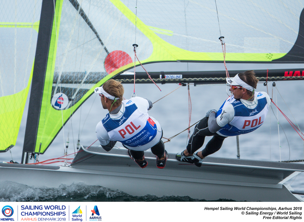 Nasi wicemistrzowie Europy Dominik Buksak i Szymon Wierzbicki (AZS AWFiS Gdańsk/AZS Poznań) zajęli w poniedziałek miejsce dwudzieste trzecie, co poskutkowało spadkiem z lokaty czternastej na dwudziestą pierwszą. Prowadzenie utrzymali Francuzi Lucas Rual i Emile Amoros, którzy dopłynęli tego dnia na miejscu piątym. Broniący tytułu Dylan Fletcher-Scott i Stuart Bithell z Wielkiej Brytanii znajdują się dopiero na dwudziestym miejscu. W klasie 49er podczas duńskich zawodów na igrzyska może zakwalifikować się osiem krajów, a pozycja załogi Przybytek/Kołodziński daje nam na razie piątą lokatę.