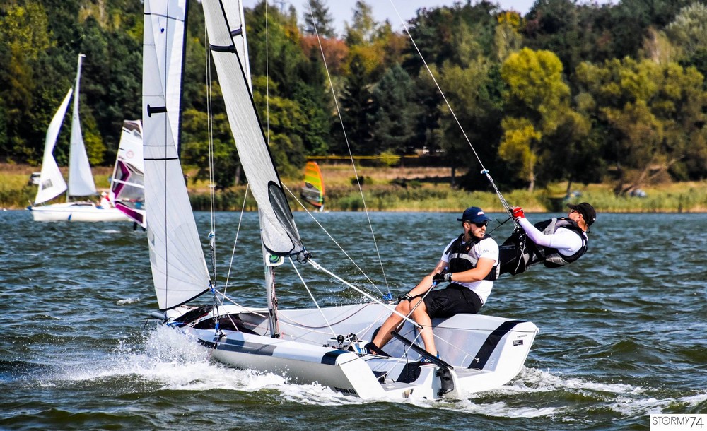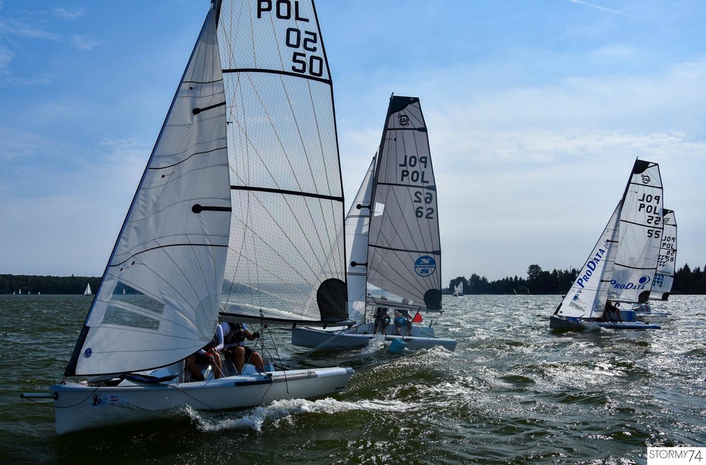 Dzień drugi Mistrzostw stał pod znakiem podobnej, zmiennej pogody, która nie była łatwa dla startujących załóg. Nie obyło się bez spektakularnych wywrotek. Był to też dzień teamu North Sails, który wygrał wszystkie wyścigi, choć nie było to wcale proste ani oczywiste, bo stawka tasowała się w zasadzie cały czas, np. w drugim wyścigu prowadzenie zmieniało się trzy razy pomiędzy załogami North Sails, Nawrocki/Dzierżewicz Sailing Team i HRM Racing Team.