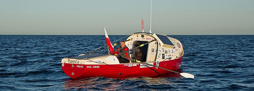Teraz wraca na wielką wodę – tym razem na Atlantyk – i chce ten wyczyn potraktować jako trening przed powrotem na Ocean Spokojny. Piotr Adamowicz, znany żeglarz i konstruktor, przeprojektował „Pianistę” – łódź podróżnika tak, by spełniała wszystkie warunki niezbędne do skutecznego i bezpiecznego żeglowania. Jest to jednostka wiosłowa z powierzchnią nawiewu.