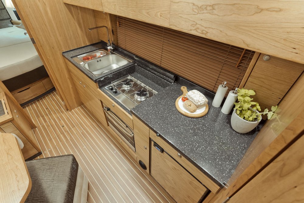 Została zaprojektowana z myślą o możliwości rozbudowywania i dostosowywania do indywidualnych potrzeb, zarówno pod względem designu wnętrza, jak i wyposażenia. Łódź wyposażona w silnik stacjonarny o mocy 300 KM oraz z kategorią projektową B może odbywać pełnomorskie rejsy.