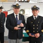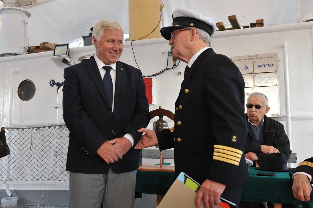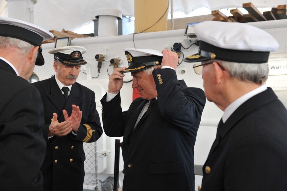Uroczystość nadania tytułu odbyła się wczoraj 19 września na pokładzie „Daru Pomorza”. Z tej okazji uhonorowany otrzymał tradycyjną kapitańską czapkę będącą oznaką przyjęcia do grona kapitanów żeglugi wielkiej.