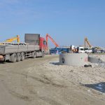 Jak zapewnił kierownik budowy Dominik Wróblewski, właśnie zakończyło się scalanie elementów mostu południowego. Teraz na budowie trwa m.in. pogłębianie odcinka północnego, w celu wprowadzenia pierwszych jednostek pływających niezbędnych przy pracach morskich na Zatoce Gdańskiej. Trwa też profilowanie skarp oraz prace narzutowe i roboty żelbetowe na falochronach portu osłonowego.