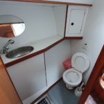 – Bardzo wiele rzeczy i ciekawych, praktycznych rozwiązań, jakie zastosował dotychczasowy właściciel. On zbudował jacht w rodzinnej miejscowości, czyli w Ipswich. A że marzyły mu się dalekie wyprawy, to zadbał o wiele szczegółów. Kadłub został doskonale zaizolowany od wewnątrz pianką. W ten sposób, odcinając dopływ powietrza do wewnętrznej warstwy blachy usunięty został problem z wewnętrzną korozją. Tą na zewnątrz widać i można sobie z nią radzić. Przy okazji poprawione zostały właściwości termiczne jednostki. Żywotność jachtu została przedłużona. Jacht podzielony jest grodziami na przedziały. Odcięty jest skrajnik dziobowy z łańcuchem kotwicznym. Drugi przedział to część mieszkalna oddzielona wodoszczelną grodzią. Potem jest mesa z kambuzem i podniesioną sterówką, pod która jest silnik i dwie półgrodzie. Dopóki podłoga sterówki się nie przeleje, to silnik może pracować. Tak jest też pompa o ogromnej wydajności. Na rufie jest kolejna gródź na wypadek dużej fali.