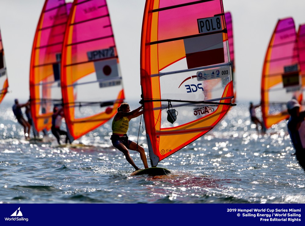 W kategorii kobiet szansę na końcowe zwycięstwo miała Zofia Klepacka (Legia Warszawa), która przed wyścigiem medalowym zajmowała czwartą lokatę i traciła dziewięć punktów do liderki. Jednak jej również przytrafił się falstart i spadła na szóstą pozycję, na której zakończyła występ w Miami. Ze zwycięstwa cieszyła się brązowa medalistka zeszłorocznych mistrzostw świata Chinka Yunxiu Lu, a skład pierwszej trójki uzupełniły Katy Spychakov z Izraela oraz aktualna wicemistrzyni świata, a zarazem mistrzyni olimpijska z Rio de Janeiro, Francuzka Charline Picon.