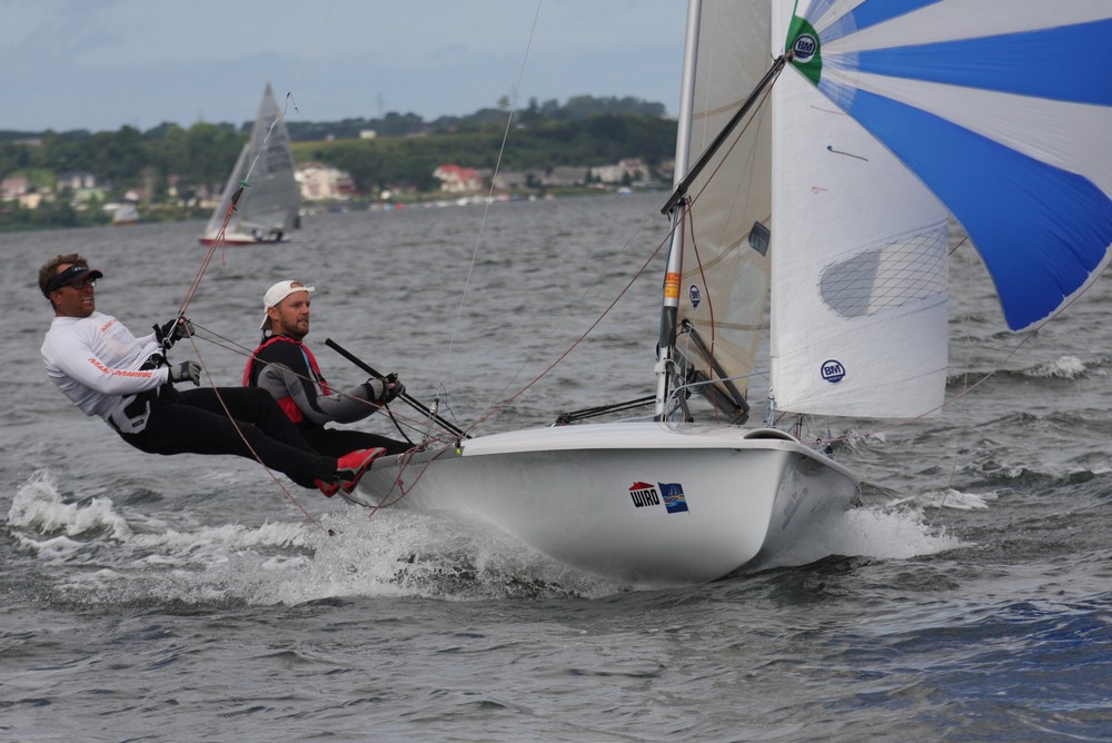 Drugiego dnia podczas trzech wyścigów wiatr wiał z prędkością od 2 do 4 m/s. Zawodnicy musieli koncentrować się na perfekcyjnym prowadzeniu łódki, taktyce i przewidywaniu zmian wiatru. Tego dnia bracia Milewscy umocnili się na prowadzeniu. Doszło jednak do poważnego przetasowania na trzeciej pozycji. Mateusz Jura na POL 9119 zapomniał o słabszych sobotnich wyścigach. Wygrał jeden z biegów, a dwa pozostałe ukończył w czołówce. To ostatecznie dało mu trzeci stopień podium, z którego wypchnął na piątą pozycję Janka Domańskiego.