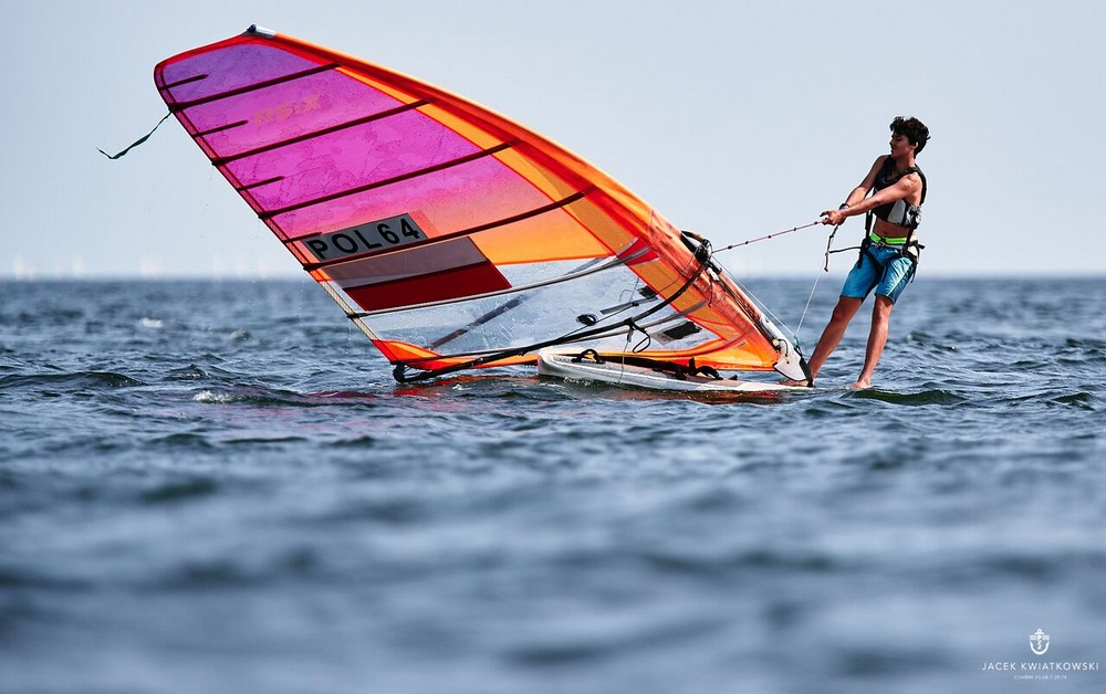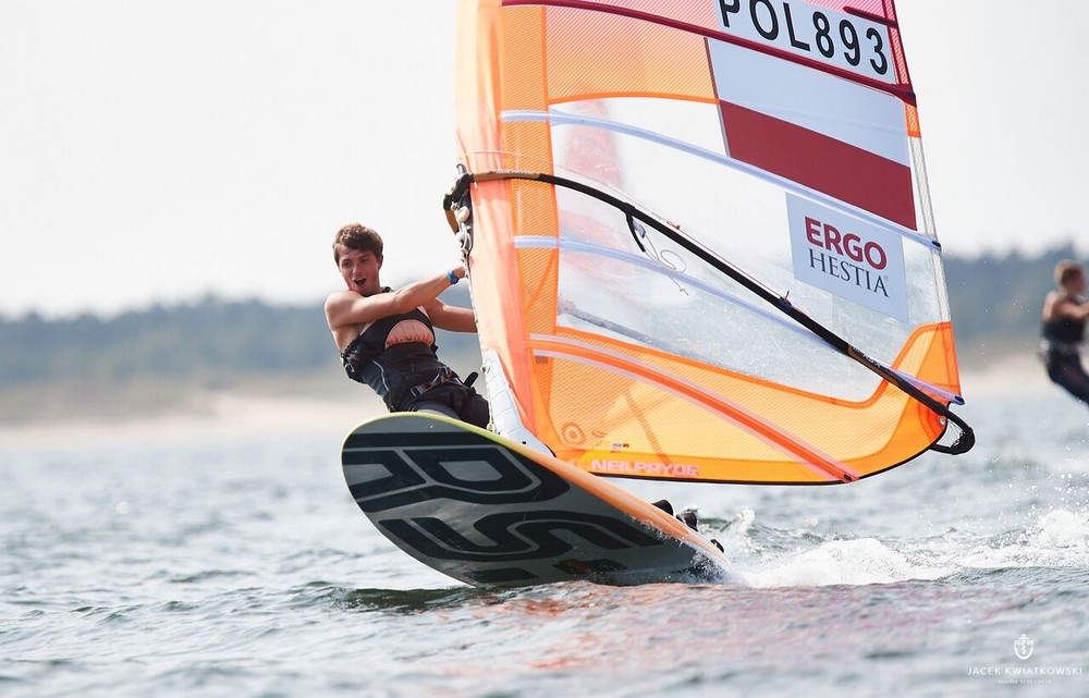 Najszybciej przebiegła rywalizacja w klasie RS:X. Po trzech wyścigach na czele stawki znajduje się Przemysław Szybkowski (SKŻ Ergo Hestia Sopot), który dzień rozpoczął miejscem trzecim, a następnie dwa razy przypływał pierwszy. Po piętach depcze mu Mikołaj Michalski (GKŻ Gdańsk), który ma na koncie tyle samo punktów. Cztery punkty traci do nich trzeci w klasyfikacji Dominik Lewiński (GKŻ Gdańsk). Dziewczęta i chłopcy ścigali się w jednej grupie i najwyżej sklasyfikowaną dziewczyną jest Weronika Marciniak (SKŻ Ergo Hestia Sopot), która w klasyfikacji ogólnej zajmuje siódmą pozycję.
