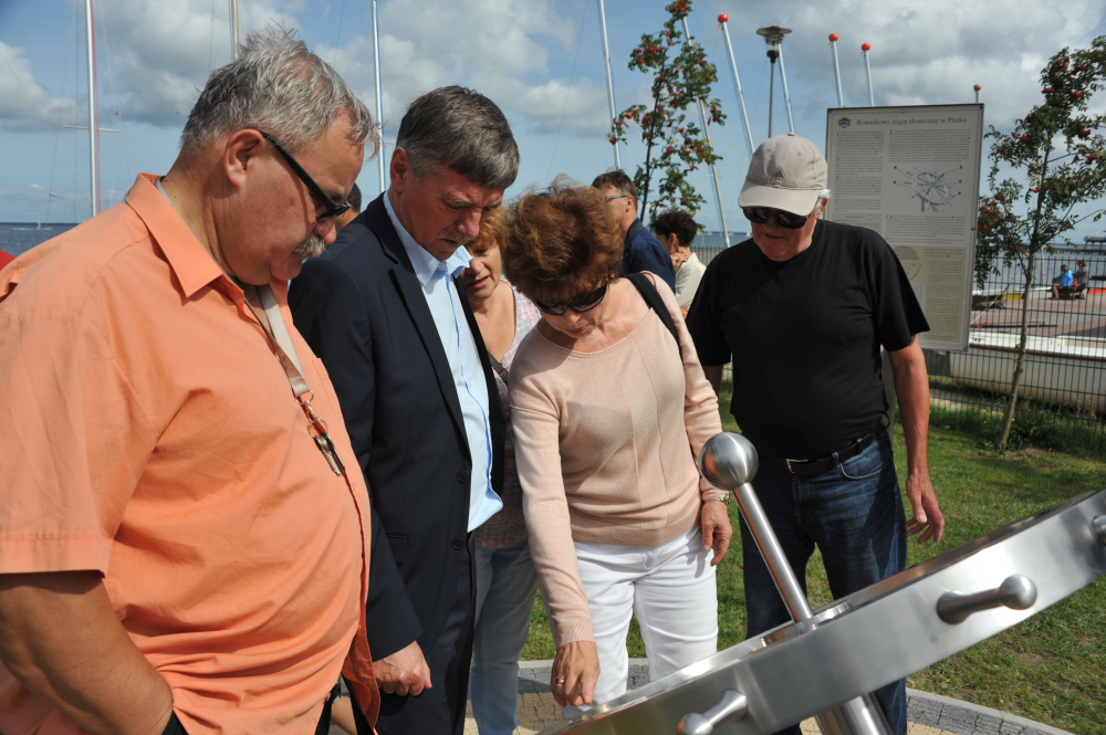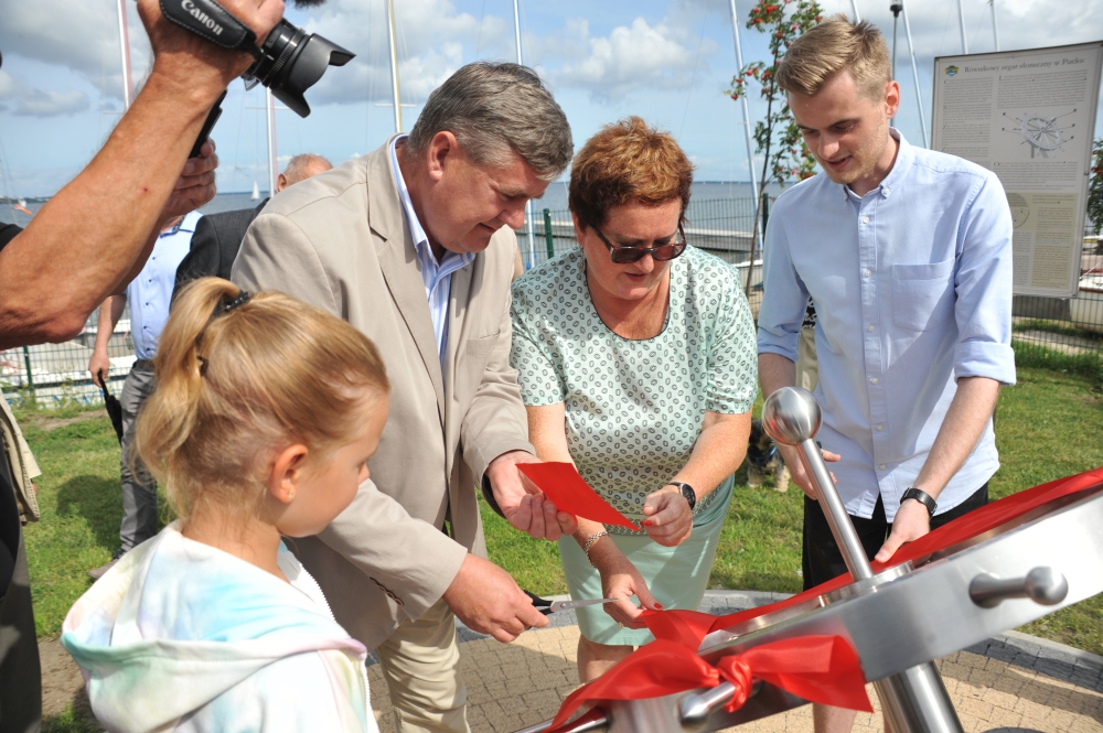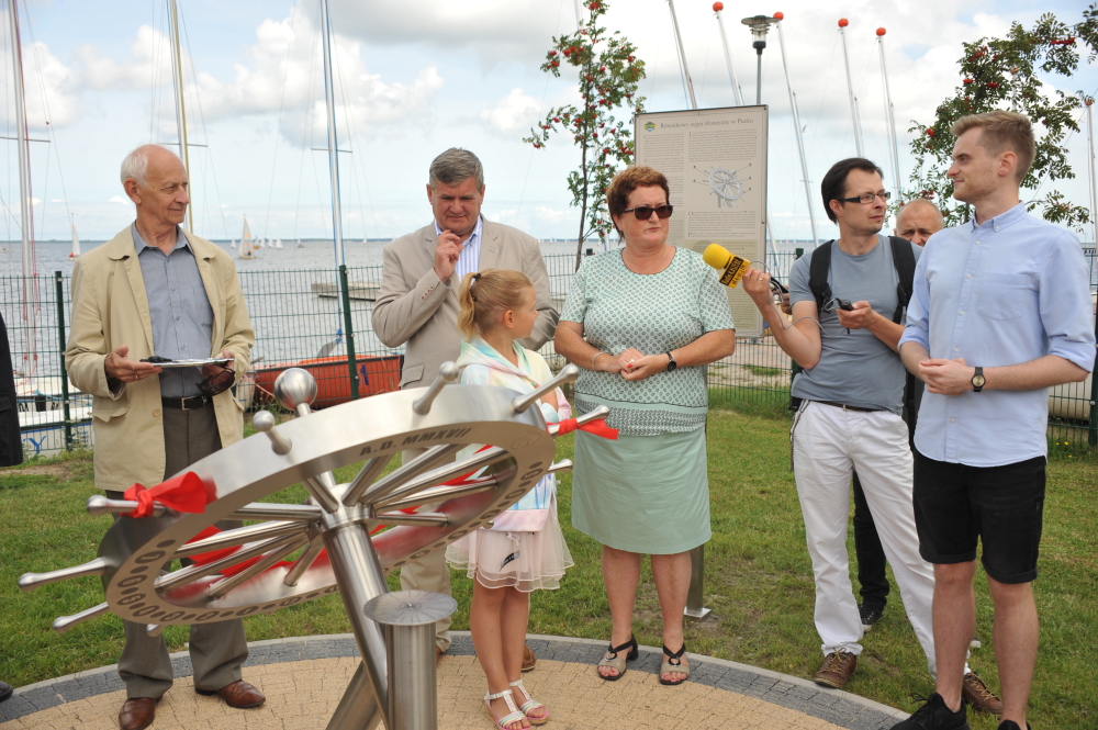 W samo południe 26 sierpnia, w porcie rybackim w Pucku odsłonięto niezwykły zegar słoneczny, jakiego trudno szukać gdziekolwiek na świecie. Przecięcia wstęgi odsłaniającej czasomierz dokonali burmistrz Hanna Pruchniewska, wywodzący się z gminy Puck poseł na Sejm Kazimierz Plocke i para młodych mieszkańców miasta.