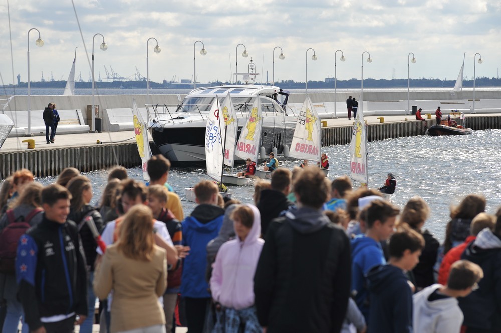 – Witam was w tym ważnym dniu – powiedział do młodych adeptów żeglarstwa Jacek Karnowski. – Żeglarstwo jest nauką odwagi i odpowiedzialności i mam nadzieję, że poza tym, że będziecie się dobrze uczyć, będziecie właśnie odważni i odpowiedzialni. Mam dla was dobrą informację, niebawem rozpoczniemy w marinie budowę zaplecza, dzięki któremu będziecie mieli gdzie się przebrać, schować swój sprzęt sportowy i przygotować do treningów. Życzę wam wszystkiego dobrego i udanego sezonu szkolnego.