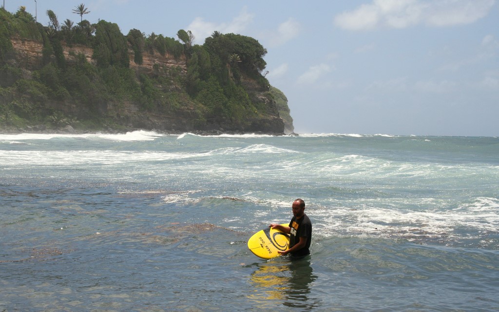Kilkanaście lat mojego żeglarstwa przypadło na intensywną zażyłość z windsurfingiem, która zaczęła się w 1994 roku. Potem wróciłem do jachtów i stopniowo skoncentrowałem się na żeglarstwie wyprawowym, ale zawsze miałem ogromną ochotę spróbować surfingu na fali, który w bałtyckich warunkach jest praktycznie niemożliwy. Podczas wyprawy „Sputnikiem dookoła Ziemi” kilkukrotnie mijaliśmy miejsca, gdzie surfing da się uprawiać, jednak zawsze albo brakowało nam czasu, żeby zostać tam dłużej, albo nie było możliwości zdobycia odpowiedniego sprzętu, albo ostatecznie po pokonaniu pierwszych dwóch trudności nie było dobrej fali. Gdy dowiedziałem się, że na Martynice jest kilka plaż odpowiednich do surfowania, postanowiłem podejść do sprawy poważniej. Podczas naszej wycieczki objazdowej po wyspie dotarliśmy na Półwysep Caravelle. Właśnie tutaj znalazłem jedyny na wyspie sklep z używanymi deskami, znajdujący się kilkaset metrów od „najłatwiejszej” plaży Martyniki.