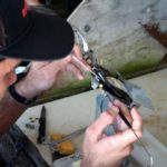– Po wykonanym graftingu kolejna osoba przewierca muszle w bezpiecznym miejscu i przez powstały otwór przewleka kawałek mocnej żyłki.