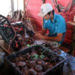 Przeszliśmy pod wiatę, gdzie kilka osób otwierało klatki świeżo przywiezione z laguny.