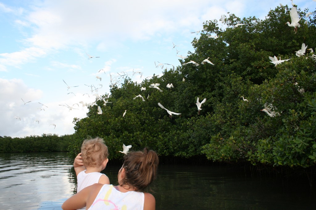 Powrót czapli wywołuje rwetes na skraju mangrowca. Najlepsze drzewo pełne jest gniazd i nigdy nie zaszkodzi ogłosić swojego powrotu, na wypadek gdyby inny lokator postanowił zmienić lokal na wygodniejszy. W kolonii żeglarskiej sprawy wydają się z pozoru bardziej poukładane. Jachty stoją na ponumerowanych miejscach wymagających wcześniejszej rezerwacji, a największy rwetes na naszym pontonie wywołuje mały Bruno wypatrujący taty wracającego z pracy. Cóż to za radość, gdy zza rogu wyłoni się żółty kajak z żółtymi wiosłami, na którym można przepłynąć się z tatą wzdłuż sąsiednich jachtów, zanim cała rodzinka zasiądzie w końcu do obiadu!