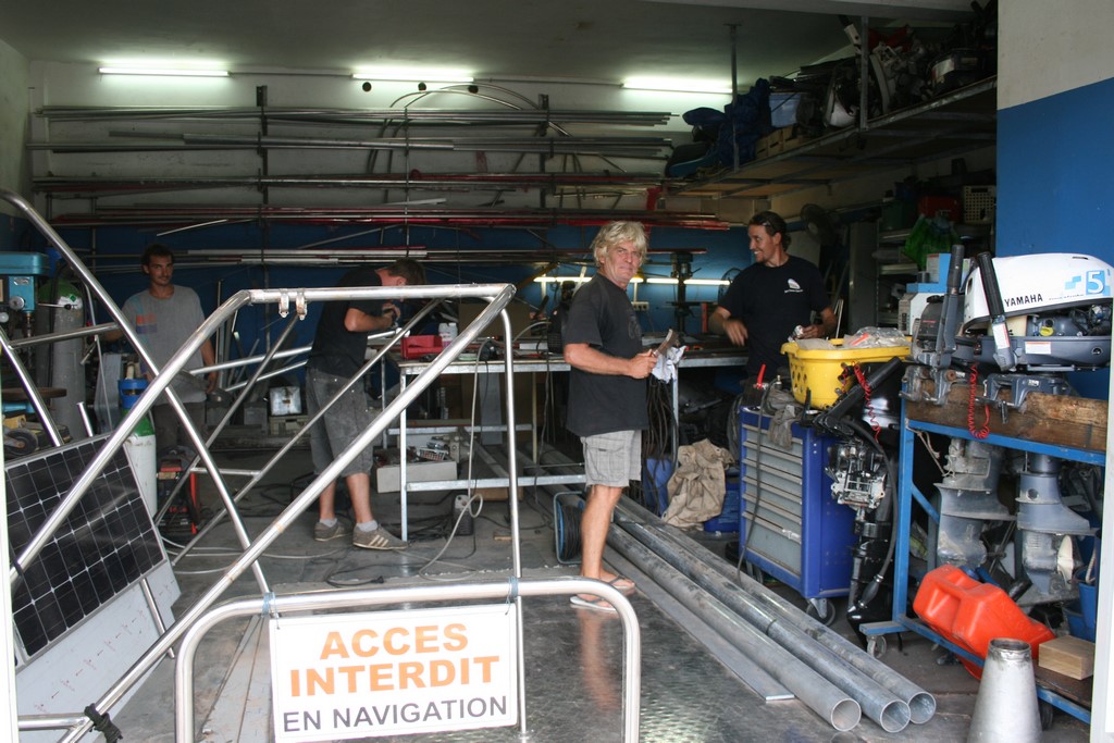 Na samym początku poświęciłem weekend, by przekonać się, że pozostawiony samotnie na polu bitwy nie mogę znaleźć kluczy i wierteł, a żadna z trzech wiertarek nie działa. Od poniedziałku warsztat odwiedzali wszyscy przyjaciele i znajomi szefa, oprócz niego samego, tworząc dodatkowo sztuczny tłum i rażąc się wzajemnie prądem z trzech spawarek pracujących jednocześnie przy małym stole stojącym w kałuży. Pod koniec dnia uciekałem z warsztatu na widok Włocha, który wespół z Hiszpanem spuszczali benzynę z silnika zaburtowego naprawianego tuż obok spawającego Francuza.