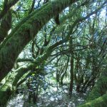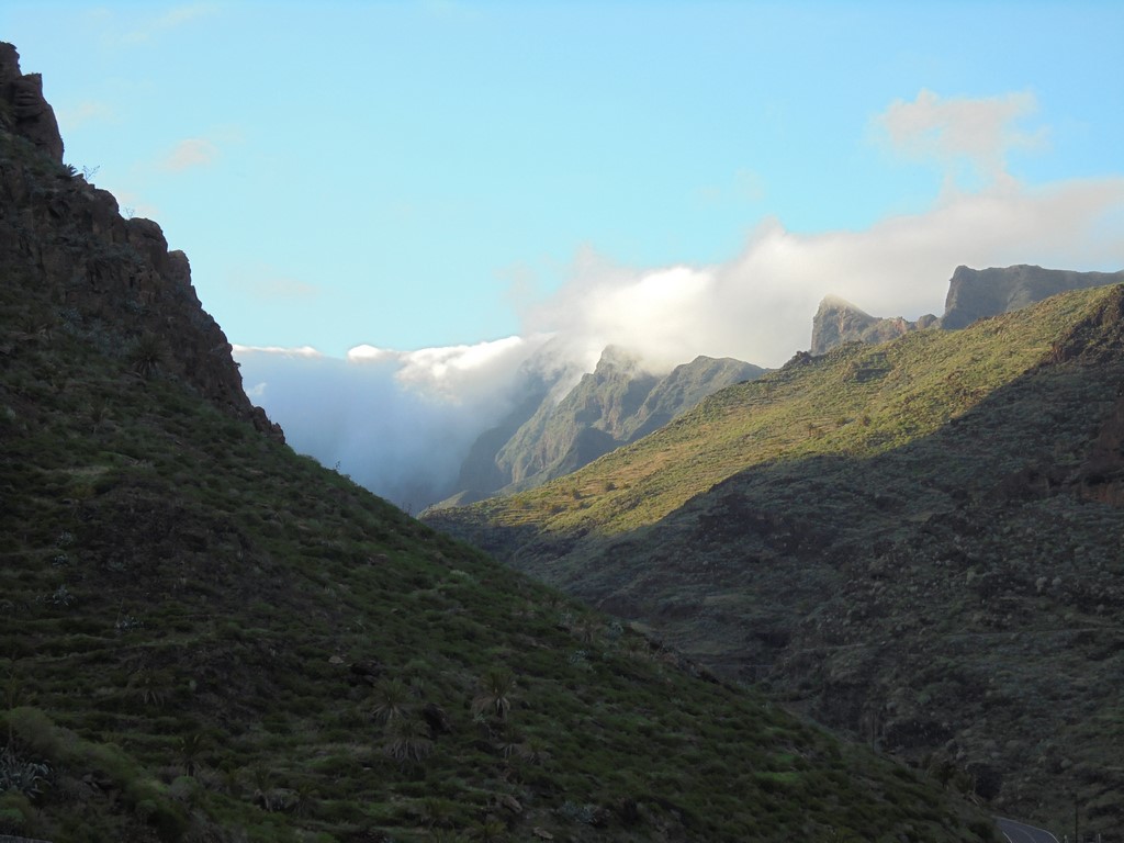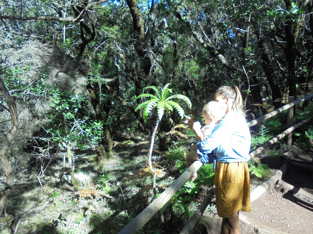 Powyżej tarasów zaczynają się strome, zerodowane skały wulkaniczne, wśród których doskonale radzą sobie mniejsze palmy, agawy, aloesy, zdziczałe figi, winorośl, sosny i wszelka inna roślinność, gdyż wody deszczowej i rosy przyniesionej przez pasaty nigdy tu nie brakuje. Od tego momentu kamienne ścieżki zaczynają robić się śliskie i podchodzenie wyżej bez dobrych butów może skończyć się w najlepszym wypadku skręceniem nogi. Po dojściu do poziomu chmur wkracza się do lasu, który jako jeden z nielicznych na świecie przetrwał ostatnią epokę lodowcową. Drzewa laurowe i sięgające kilkunastu metrów drzewiaste wrzosy stanowią główny składnik tej niezwykłej puszczy. Nie brakuje tu też dwumetrowych kuzynów popularnego u nas mniszka lekarskiego i innych roślin, znanych w Europie w wersji mocno skarłowaciałej. Zwisające z prastarych konarów długie brody mchów dodają całej scenerii bajkowego wyglądu.