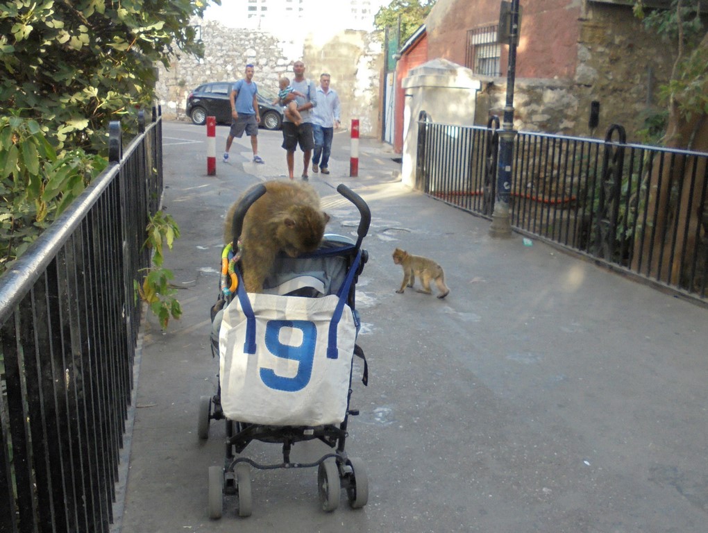 Sporo czasu zajęło nam odstraszenie intruza, który w tym czasie zdążył splądrować wiszącą na wózku torbę.