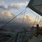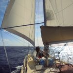 W trakcie pierwszej doby udało nam się sprawnie opuścić zatłoczoną Zatoką Panamską. Z każdym kolejnym dniem mijaliśmy mniej statków, ale też żeglowaliśmy coraz wolniej. Przed nami leżał najtrudniejszy kawałek trasy. Kilkaset mil strefy słabych i zmiennych wiatrów oraz kapryśnych prądów oddzielało nas od niezawodnych pasatów. Wykorzystując każdy korzystny podmuch wiatru, i w ostateczności wspierając się silnikiem, doczłapaliśmy się w końcu w okolice równika, gdzie zgodnie z przewidywaniami, podczepiliśmy się pod darmowy pociąg gnający na zachód. Od tej pory nasze przebiegi dobowe wzrosły do 140 a nawet 160 mil morskich, przy minimalnej pracy przy żaglach.