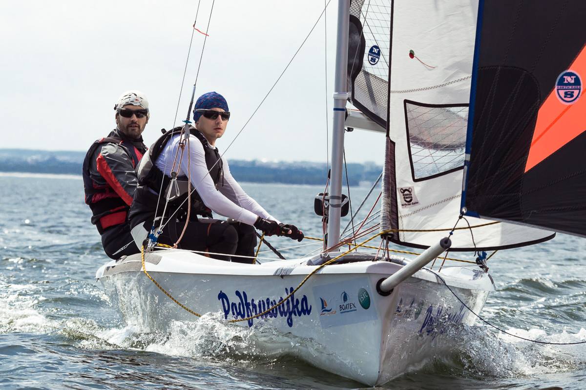 Już pierwszego dnia na prowadzenie wysunął się team Paweł Nawrocki i Piotr Dzierżewicz (Między Żaglami, Nieporęt), którzy w ubiegłym roku zdobyli klasowy Puchar Polski. Jednak różnica pomiędzy nimi, a kolejną załogą była niewielka. Na drugiej pozycji, tuż za nimi, były Anna Szmul i Gabriela Murach (niezrzeszone, Poznań), które dwa lata temu, również na Nord CUPie, wspólnie wywalczyły wicemistrzostwo Polski, wówczas tuż za załogą Pawła Nawrockiego. Trzecie miejsce, również z niewielką stratą należało po pierwszym dniu do zespołu Anna Jabłońska i Agata Czarmińska (JKW Poznań). Anna Jabłońska broniła mistrzowskiego tytułu, który wywalczyła rok temu, również podczas Nord CUPu.