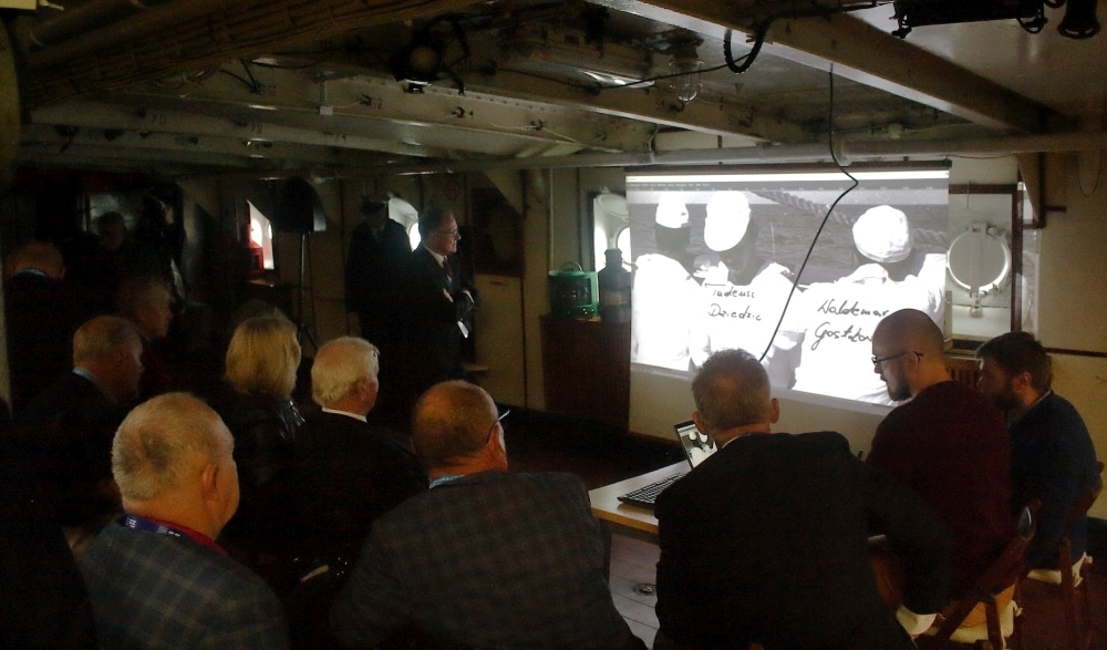 Po powitaniu uczestnicy spotkania obejrzeli film dokumentalny „Kapitan” z 1973 roku, który opowiada o starcie „Daru Pomorza” w regatach The Tall Ships Races. Następnie żeglarze mieli okazję zobaczyć wspomnienia nagrane przez NMM, przejrzeć archiwalne zdjęcia z rejsu – i spróbować zidentyfikować osoby, które są na nich – oraz zwiedzić żaglowiec.