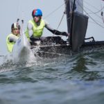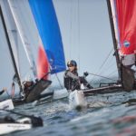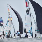 Wysoką dyspozycję nadal utrzymują nasze dwie najlepsze załogi w klasie 49er. Lepiej poradzili sobie Łukasz Przybytek i Paweł Kołodziński (AZS AWFiS Gdańsk), którzy w pierwszym wyścigu zajęli miejsce drugie, w następnym czwarte, a w ostatnim siódme i dzięki temu przesunęli się z pozycji drugiej na pierwszą w całych zawodach. Punkt za nimi, na drugiej lokacie znajdują się Hiszpanie Diego Botin i Iago Marra (miejsca 1, 1 i 22). Z kolei Dominik Buksak i Szymon Wierzbicki (AZS AWFiS Gdańsk/AZS Poznań) zaczęli dzień miejscem piątym, a później mijali linię mety jako jedenasta oraz dziewiąta ekipa. To pozwoliło im pozostać na szóstej pozycji w gronie 92 załóg z 33 państw, ale w klasyfikacji europejskiej zanotowali spadek z lokaty czwartej na piątą. Obie polskie ekipy bez problemu zakwalifikowały się do złotej grupy fazy finałowej.