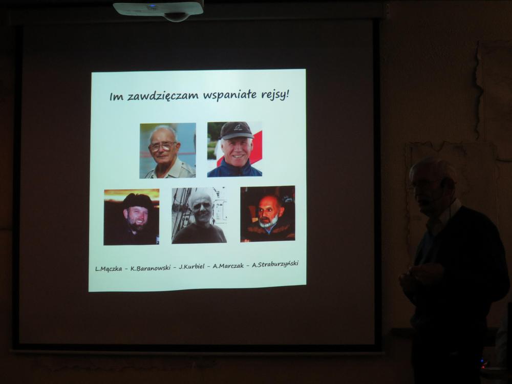 Pływał zawsze z innymi i od tego rozpoczął spotkanie, dziękując tym kapitanom, z którymi odbył najwięcej wspaniałych rejsów – Ludomirowi Mączce, Krzysztofowi Baranowskiemu, Januszowi Kurbielowi, Andrzejowi Marczakowi i Andrzejowi Straburzyńskiemu. Opłynął praktycznie cały świat, nawet kilkakrotnie, odwiedził setki wysp i portów, o których mógłby opowiadać całymi dniami.