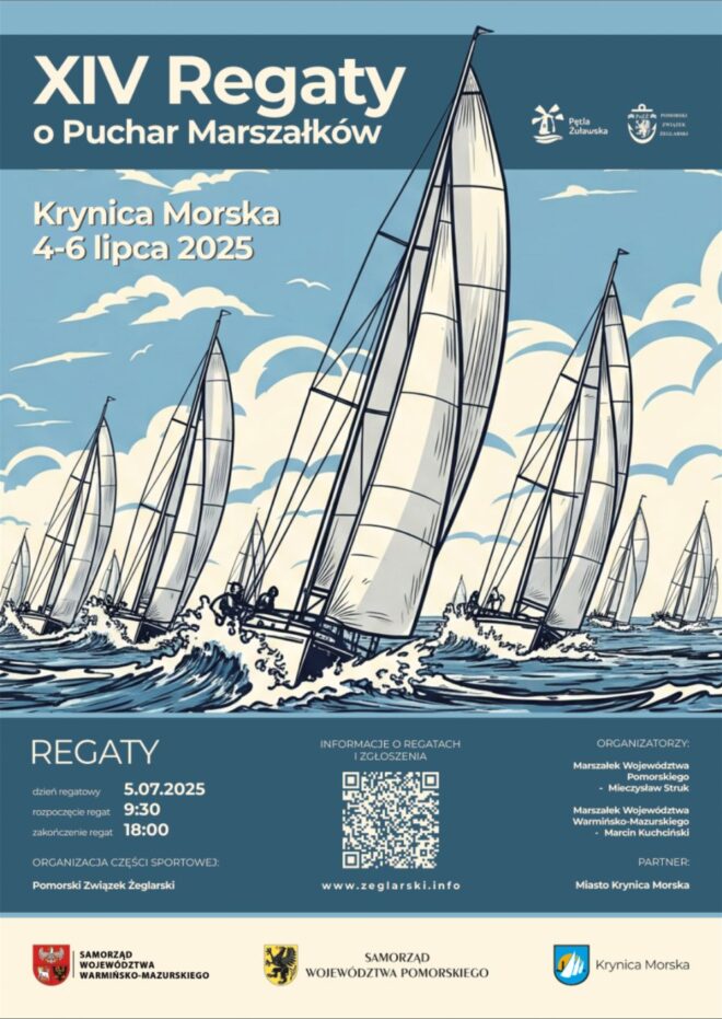 Marszałek województwa pomorskiego Mieczysław Struk i marszałek województwa warmińsko-mazurskiego Marcin Kuchciński zapraszają do udziału w żeglarskich regatach, które zaczynają się już w piątek 4 lipca 2025 roku.