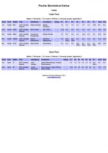 Załoga w składzie Patryk Ulaczyk i Maciej Dowbusz z UKŻ Lamelka Kartuzy pokonała swoich klubowych kolegów i wygrała rywalizację klasy Cadet. Z kolei załoga Lecha Dubieli z UKŻ Lamelka Kartuzy wygrała klasyfikację Open. Ogółem w zawodach uczestniczyło 7 klubów z województwa pomorskiego.