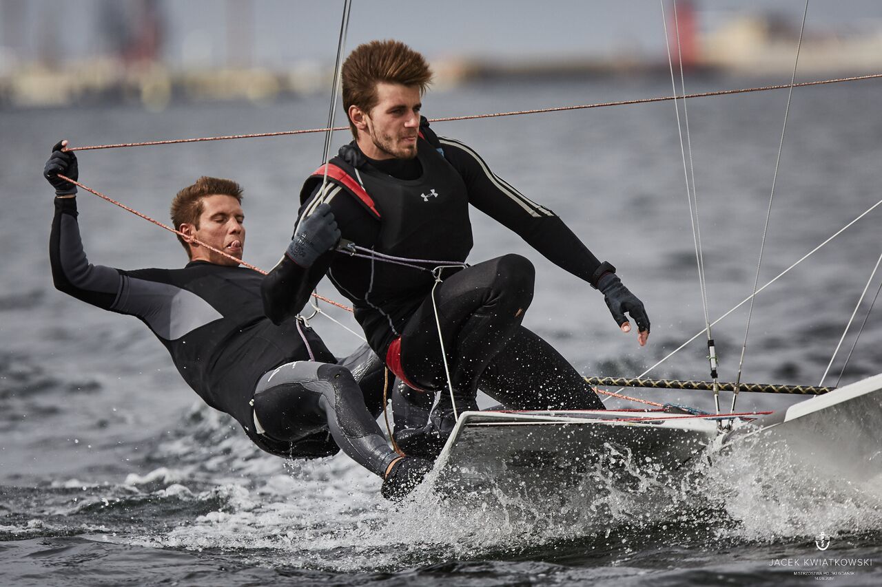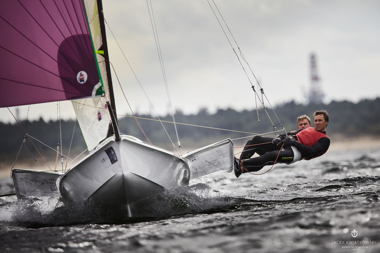Broniący tytułu żeglarze AZS AWFiS Gdańsk i ósma załoga igrzysk olimpijskich w Rio de Janeiro wyprzedza Przemysława Filipowicza (AZS AWFiS) i Jacka Nowaka (AZS UWM Olsztyn) oraz Dominika Buksaka (AZS AWFiS) i Szymona Wierzbickiego (AZS Poznań).