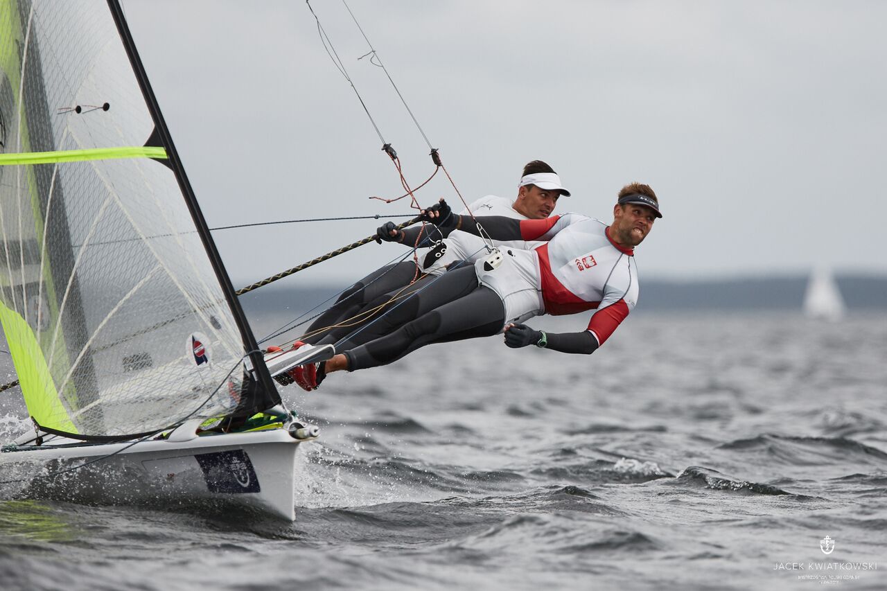 – Pierwszego dnia mistrzostw nie mogliśmy narzekać na warunki – przyznał Paweł Kołodziński, który razem ze sternikiem Łukaszem Przybytkiem prowadzi w klasie 49er. – Pływaliśmy w ślizgu, a do tego rywalizacja była bardzo emocjonująca. Trzy załogi prezentują zbliżony poziom i we wszystkich czwartkowych wyścigach tasowaliśmy się.