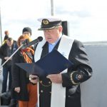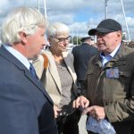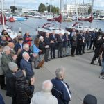 Uroczystość zgromadziła kilkadziesiąt osób, w tym m.in. Krzysztofa Czopka z Urzędu Marszałkowskiego Województwa Pomorskiego (trzeci od lewej), senatora RP Sławomira Rybickiego (czwarty od lewej), prezesa Pomorskiego Związku Żeglarskiego Bogusława Witkowskiego (piąty od lewej) i przewodniczącą Rady Miasta Gdyni Joannę Zielińską.