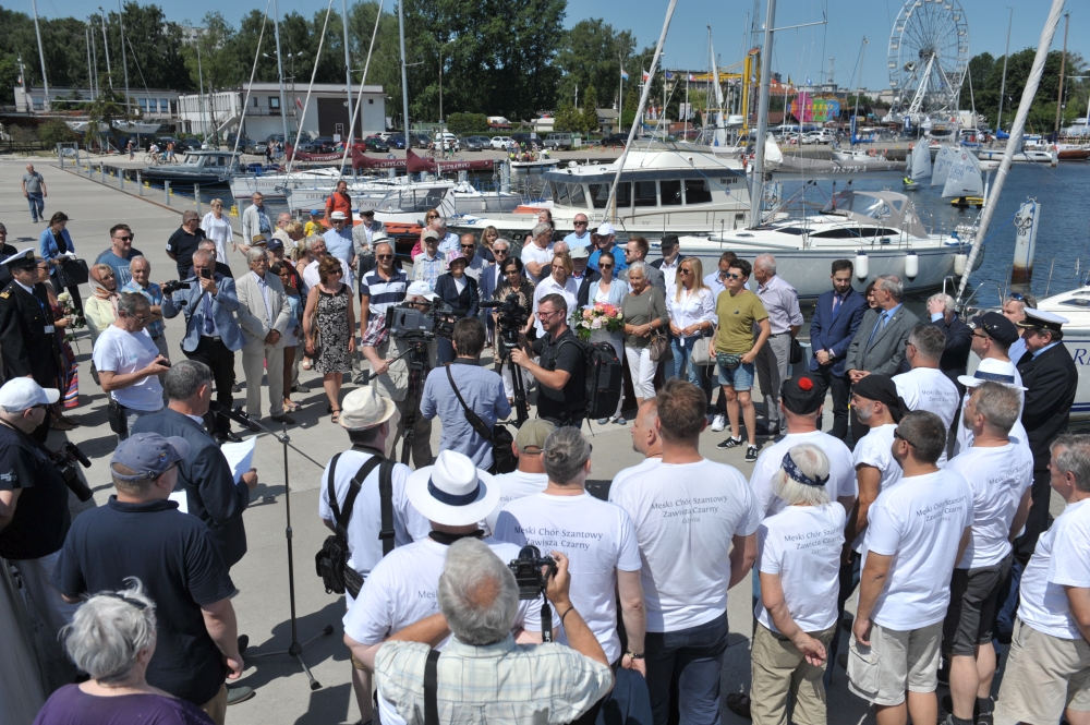 Po krótkim wprowadzeniu tablicę uroczyście odsłonili: Ewa Bereśniewicz-Kozłowska, Bogusław Witkowski i Grzegorz Taraszkiewicz, a poświęcił ją o. Edward Pracz, kapelan Duszpasterstwa Ludzi Morza. Uroczystość uświetnił występ Męskiego Chóru Szantowego „Zawisza Czarny”.